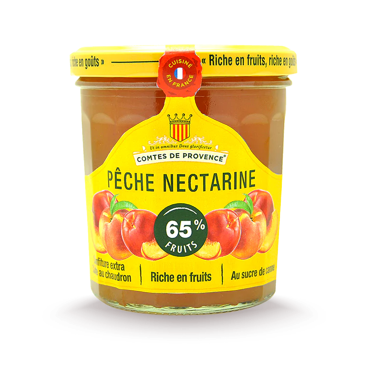 Cette confiture de Pêche Nectarine préparée avec 65 % de fruits