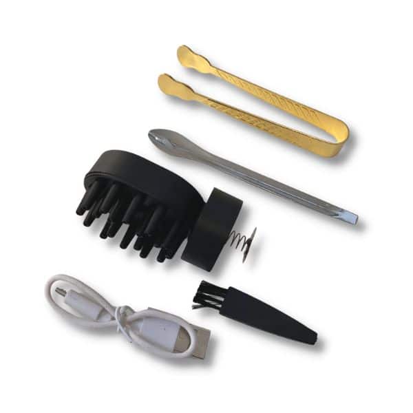 Rechargeable par usb, vendu avec son câble usb et une pince pour le bakhour.