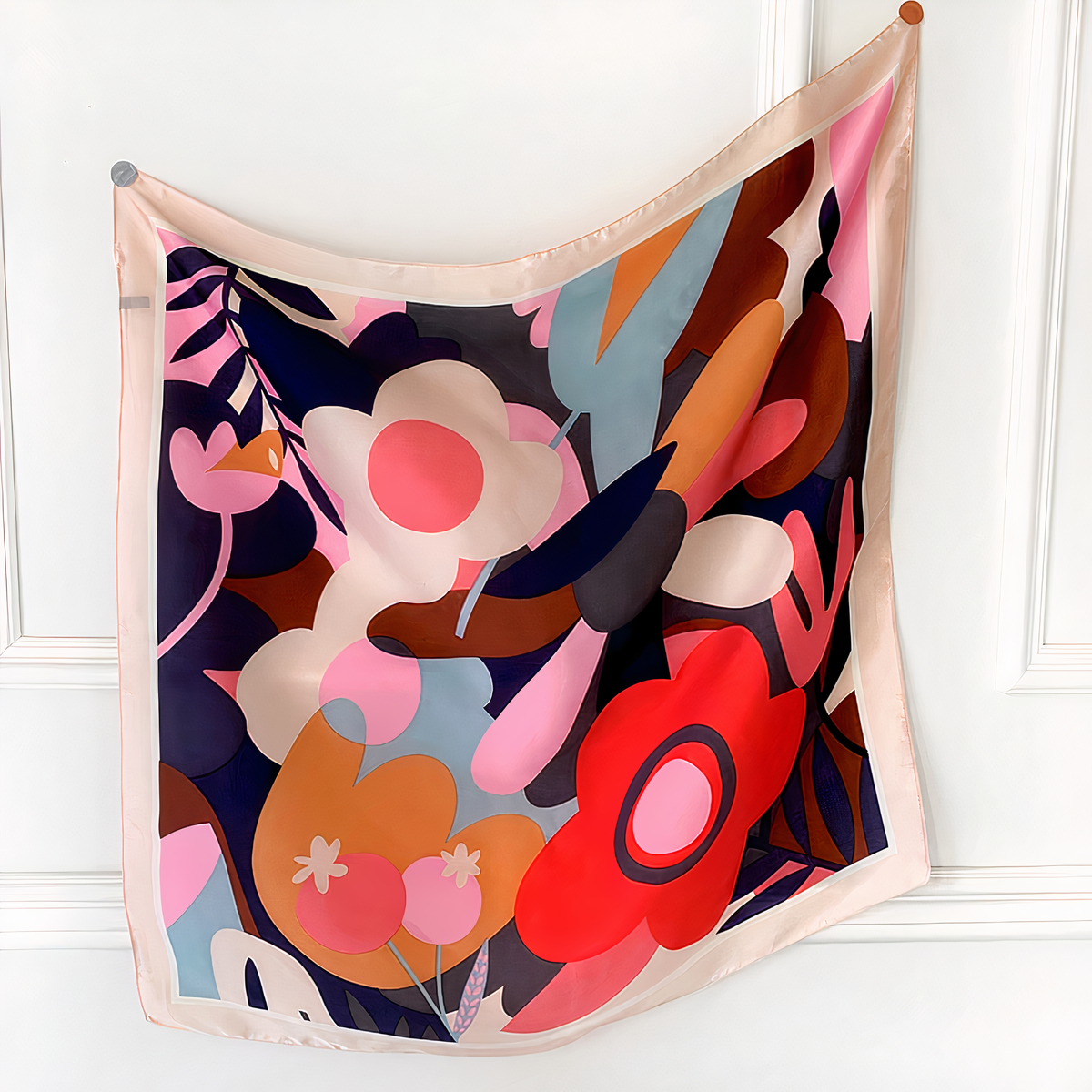 Foulard carré en satin à fleurs