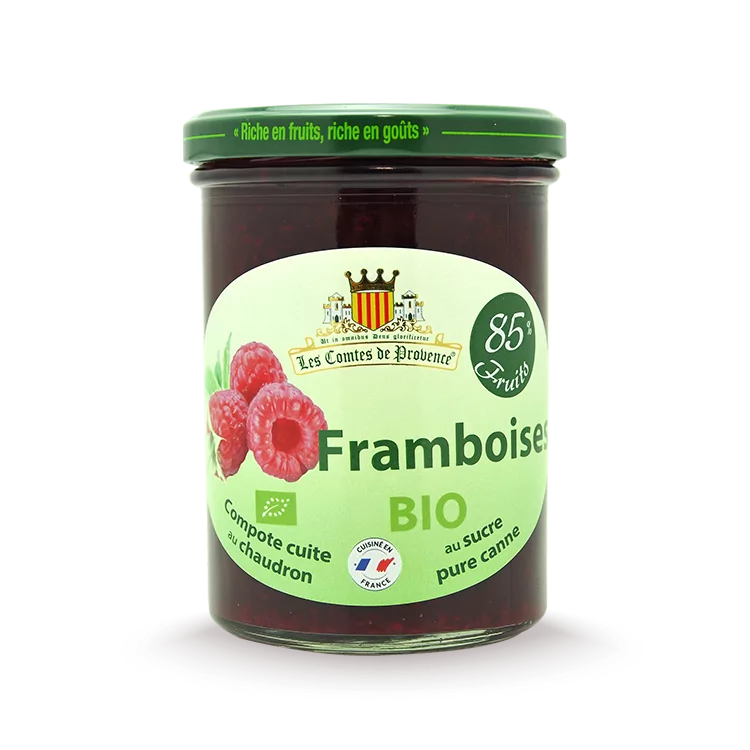NEU! Entdecken Sie unser Bio-Himbeerkompott mit 85% Früchten und Rohrzucker, im Kessel gekocht.ron.
