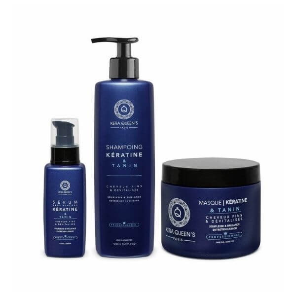 Gamme Kératine & Tanin : Souplesse & Brillance, entretient lissage – Kera Queen’s